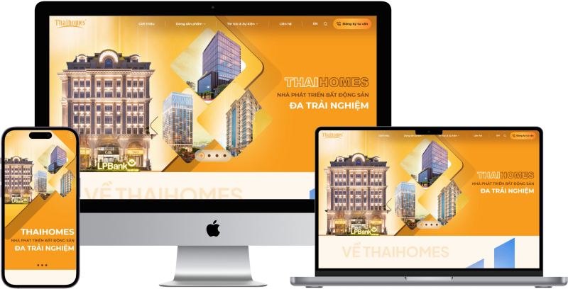 Được thiết kế và phát triển bởi công ty thiết kế website BICWeb, đơn vị sở hữu hơn 15 năm kinh nghiệm xây dựng giải pháp công nghệ và website chuyên nghiệp cho doanh nghiệp bất động sản, ThaiHomes.vn toát lên tinh thần sang trọng – tinh tế – hiện đại, đồng thời đồng bộ với bộ nhận diện thương hiệu ThaiHomes.